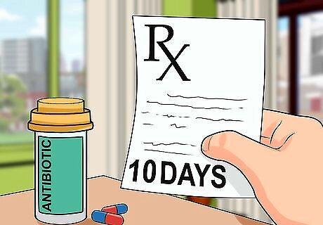 Use antibiotics as directed. In many cases, your dentist will prescribe an antibiotic to help treat an infection. The antibiotic will help to fight off any remaining bacteria from your tooth infection. Make sure that you take the antibiotics exactly as instructed by your dentist. Do not stop taking the antibiotics without talking to your dentist first because this may decrease the effectiveness of any antibiotics that you take in the future. Your doctor also might prescribe an anti-fungal medication for you (for the prevention of candida), as well as gastric protection pills for your stomach.