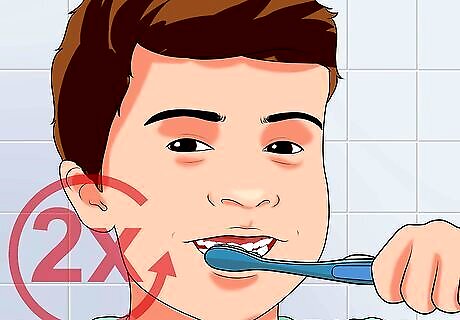 Brush your teeth twice per day. Brushing your teeth in the morning and the evening can help to reduce plaque and prevent cavities. Make sure that you use a fluoride toothpaste to brush your teeth and take your time as well. Other good brushing habits include: Brush all surfaces of your teeth (front, back, tops, and along the gumline). Brush your tongue. Rinse your mouth after every meal. Keep your toothbrush in a stand that allows it to air dry (a moist toothbrush is more prove to bacteria). Replace your toothbrush every three to four months.
