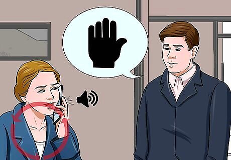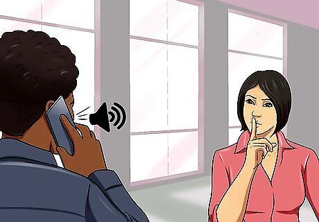 Stop a repeat offender at work. If the caller is frequently getting loud again, then you may need to take more aggressive action. Repeat the isolation and direct asking steps if possible. This will ideally preserve your congeniality with the coworker is repeatedly getting loud on the phone. If the loud talker continues to return to a higher volume, then what you do will depend on where you are. If you are with a coworker on the job you may need to ask a supervisor for intervention if the loud talking is interfering with work.