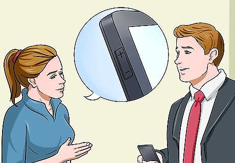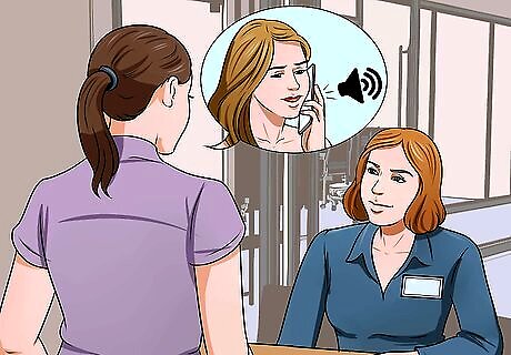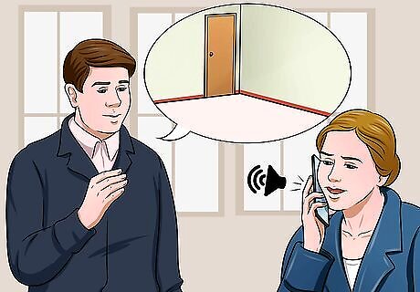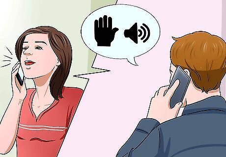 Ask the caller to stop talking loudly more directly. This could be interpreted as rude so there is a risk of confrontation with the caller on the other end. This is a last resort when the other methods aren't working or practical to use. This can bring about several responses including the loud caller agreeing to continue the conversation at a lower volume, the caller ignoring you with continued loud talking, or taking offense. If the caller is offended you may receive an insult in response or the caller may just end the call. If the caller ignores you, then you can try repeating your efforts to ask the caller to reduce talking volume or attempt the other steps again. But this increases the risk of offending them. Simply say something to the effect of: "Stop talking so loudly." or "Talk more quietly."