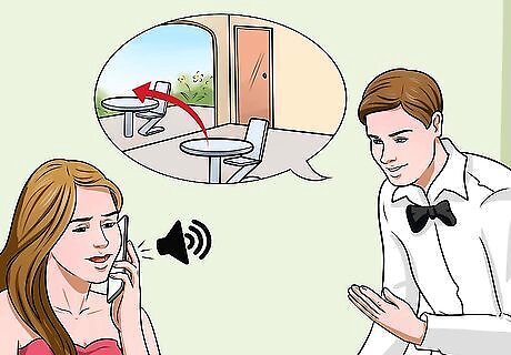 Request if you can reschedule the call. This can mean moving the call to another place and/or time. If you or the loud caller talking to you are at dinner or a movie, then you can ask to postpone the call until later. You can use moving your own location as a way to quiet things down. Ask the caller to wait until you've moved into a lobby or another office before resuming the caller’s call. This can be a reminder for the caller to reduce volume. This should be asked simply as: "Can I call you back, or you call me back in a couple of hours?" or something similar. You could also say, "Wait a moment until I've gone into the next empty office." Follow up by saying something such as, "Ok, you can talk again....lower please."