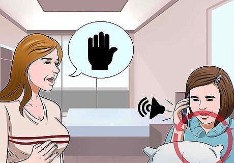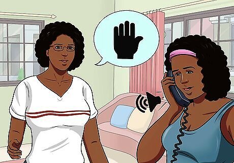 Stop a repeat offender at home. If you are at home, and have a third family member or friend available, ask for the third party’s assistance in convincing the loud talker to quiet down. Repeat the isolation and direct asking steps if possible. If not, use the relocation options. In the case of a public scene you should remind your friend, or family member of where they are. Be prepared to leave the location and let the loud talker know that you are going to leave if the caller won’t quiet down.