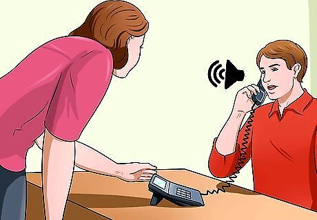 Ask the caller to leave. This is similar to earlier steps in that you are getting the ongoing offender to take their loud call elsewhere. If you have a multi-line phone you may be able to reduce volume on the line itself. This is a limited option depending on the model of phone. Tell the caller something such as, “Can you take the call in another office?” Do this each time the caller makes make a loud call. You can consider making this an automatic request by asking the caller something to the effect of, “Could you make all of your calls in the empty corner office?”