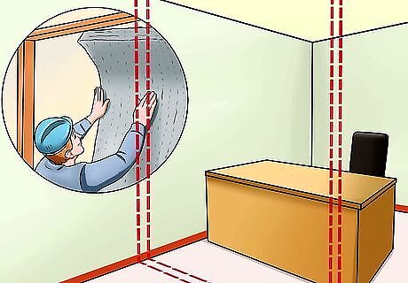 Soundproof the office. This can take more effort, but once in place it may solve the problem for a while to come. You’ll need to add foam and plastic to the walls and windows of your office space to accomplish soundproofing. Adding strips of foam, easily purchased at any hardware store, to cracks in walls and floors will help absorb sound. Put in extensions to walls and paneling where allowed to seal off any gaps. Use plastic sheeting (with sticky backing) on windows to keep out sound without hurting the view.