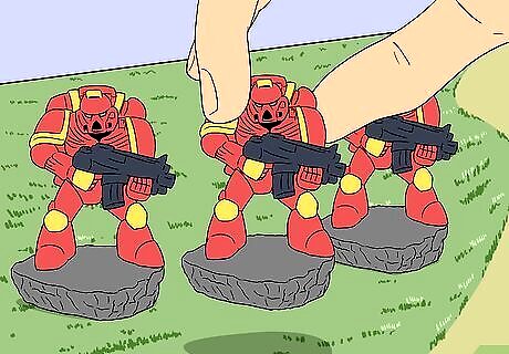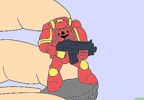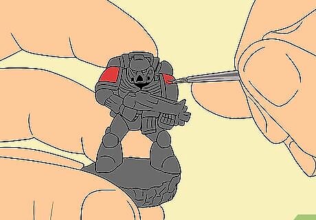 Paint your miniatures to make your game pieces yours. Break out your brushes, paints, and a magnifying glass and bring your minis to life! Feel free to use a simple two- or three-color paint job to keep it simple, or get really elaborate and get into some finer details. Besides aesthetic appeal, painting will also help you and your opponent identify units during battle. For a lot of players, the painting and miniature assembly is the best part of the game! It’s where you get a chance to really customize your army and make it unique. For the paints and brushes, you’re best off buying a miniature painting kit that contains everything you’d ever need to have. Use acrylic or modeling paint. Most miniature enthusiasts like Vallejo or Citadel paints, but any high-quality brand works.