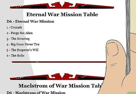 Choose a mission to play with your opponent. Any starter box set you choose comes with small missions ideal for learning the game. If you do not have a box set, choose any mission or gameplay setup in the rulebook. These will set the story for your battle and explain how to win the mission. Read the mission carefully, since it can add extra requirements for how you place terrain and deploy units. Avoid any missions with secondary objectives in the middle of the game if you’re just learning. If you want to get a sense for how competitive games go, try playing yourself!