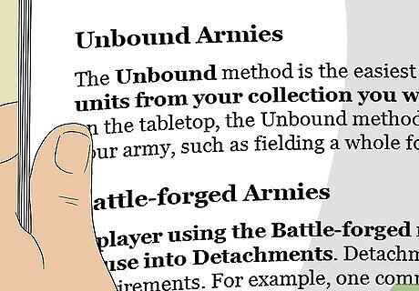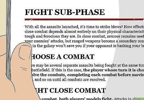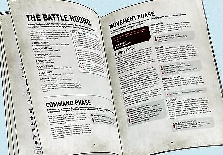 Purchase a copy of the most recent rulebook. The cheapest option is to find a used copy online, but any game shop will carry copies. It’ll help to have the rulebook handy when it's time to look up an obscure rule mid-game. Warhammer has published the rules online here. If you have a tablet with a long battery life, you can always use that instead. If you purchased a starter set, it’ll come with a copy of the rulebook.