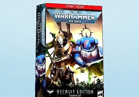 Buy the Warhammer 40,000 Recruit Edition to start fast. The Recruit Edition includes everything you need for a basic two-player game of Warhammer 40k. It’s also updated for the 9th Edition ruleset, which is what Warhammer currently uses. It contains two factions (Space Marines and Necrons), paints, dice, a ruler, a playmat, and all the miniatures you need to play. If you purchase a set like this, go to the next section. If you would rather play a different faction (and have a larger budget to spend), continue to the next step. Don't buy any products with an outdated edition listed on them. Older editions may be cheaper, but you may not be allowed to take the pieces to a tournament if you plan on playing with other 40K players. You can use miniatures from older editions, but the ruleset that comes with these box sets will be wrong if you buy 8th, 7th, 6th, etc. box sets. The game is currently in the 9th edition, but the 10th edition comes out in the summer of 2023, so buy the updated Recruit Edition whenever it drops (which will probably be shortly after the new ruleset comes out).
