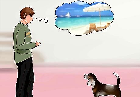 Relax around dogs. Dogs pick up on cues from people and can tell if someone is afraid in their presence. This can cause dogs to become fearful. Trying to remain calm around a dog can help you have better interactions with dogs and gradually reduce your fear. Oftentimes, people tend to freeze around dogs if they're afraid. Before dogs attack, they tend to lock up and stare. If a dog notices you engaging in this behavior, they might interpret it as a sign you're being aggressive. Instead of freezing up around dogs try to relax your muscles and ignore their presence. This might be difficult and even feel unnatural at first, but a dog is more likely to be friendly towards you if you remain calm. If you're going somewhere where you know you'll encounter a dog, try engaging in breathing and relaxation techniques beforehand. Close your eyes, imagine entering the room with the dog, and then take deep, calming breaths. If you feel brave enough to reach out, let the dog sniff your hand. Move slowly and offer out your hand in a fist,and keeping it below the dog's eye level so that he can see it easily and doesn't mistake it as a threat. do not snap your hand away if the dog moves to lick or sniff you. It's normal for dogs to nose the hand of a stranger and it does not mean the dog is going to bite. If you move your hand away too quickly, you might frighten the dog. He might think you're moving to hit him or becoming aggressive. You want to keep your interactions positive to help gradually get over your phobia.