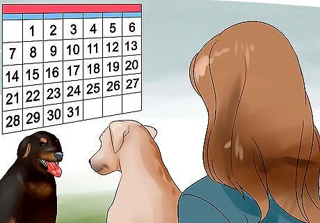 Spend time around dogs. Once you've had several positive interactions with dogs in public or at social gatherings, start to consciously spend more time around dogs. Gradual, prolonged exposure to a fear-producing stimuli is a very effective means to cure phobias. If you make an effort to interact with dogs, eventually your fear will slip away. Start small. This does not mean starting with puppies, which can be frightening because of their unpredictable behavior. Start with older, well-trained dogs that are unlikely to jump or frighten you. Remember to stay calm. If you feel compelled to leave the room when you're interacting with a dog, do not leave. This only reinforces that there is something about dogs to fear and you need to engage in behaviors like running and hiding to protect yourself. Remain in the room until you calm down. Remember that a direct stare is a threat to a dog. If you are anxious and stare at the dog, he is more likely to interpret you as a threat and become tense as a result. This then escalates a cycle of fear and suspicion. Instead, be sure to blink regularly, and watch the dog from the corner of your eye or keep moving your head so as to avoid a direct stare. Talk to friends, co-workers, and family members who own dogs about how you're trying to get over your fear. They can help by allowing you to interact with their dogs or taking you to dog-friendly places like dog parks and nature trails.