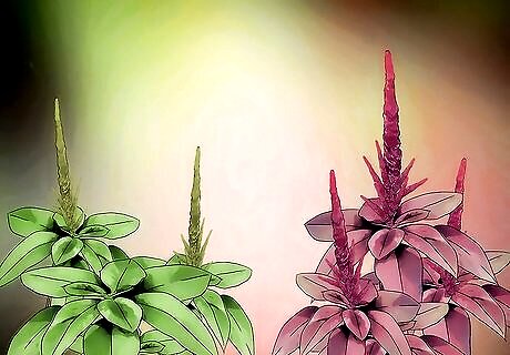 Plant Joseph’s Coat if you want edible leaves. Another especially popular amaranthus variety is A.tricolor, which is also known as Joseph's Coat or Summer Poinsettia. This plant is the classic option for growing popular edible leaves referred to as Chinese Spinach. It can grow quite large, with relatively unimposing flowers but an especially attractive and richly colored foliage. Cut back buds on A. tricolor to encourage branching. This will also delay flowering, but will ultimately lead to a larger and more vibrant plant.