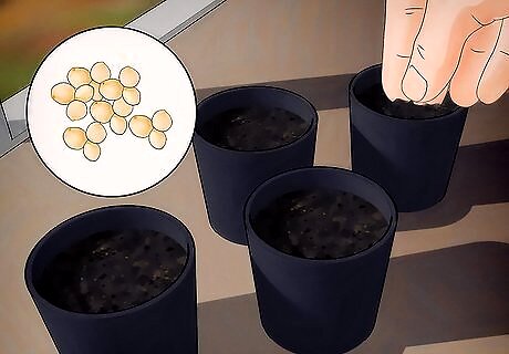 Sow amaranth seeds indoors. Individual 3 inches (7.6 cm) pots are best. If planting in a shared bed, space seedlings 10 to 14 inches (25 to 36 cm) apart from one another. Lightly cover each seed with about ⁄4 inch (0.64 cm) of soil, and place the bed out of direct sunlight, in an area where is will not be exposed to cold. Keep the seeds around 70 °F (21 °C). Your seeds will germinate in 10 to 14 days.