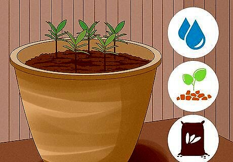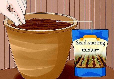 Choose a planting container that is large enough to hold the seeds. Plant each seed in the container. Plant the seeds deep in seed-starting mixture.