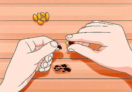Peel the coat off the 2-inch seed to reveal its white cotyledon. Repeat for each seed you're preparing to plant.