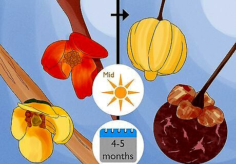 Know the fruiting cycle of your Cambogia. It will produce its four-petal red or often yellow flowers in late winter or early spring. This will be followed by its apple-sized yellow or red fruit four or five months later, in mid-summer. Expect those fruits to fall after they are have ripened, at which point you can harvest them and enjoy their nutritional benefits.