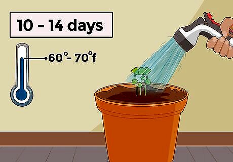 Nurture the seedlings until they're ready to plant. Spend the six to eight weeks before the last frost keeping the seedlings well-watered and warm. When the seeds germinate and the seedlings sprout and grow leaves, the seedlings are strong enough to transplant outdoors. Keep them at a steady temperature between 60 and 70 degrees Fahrenheit. The seedlings will take 10 to 14 days to sprout.
