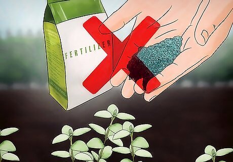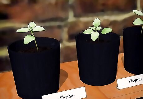 Avoid over-fertilizing thyme. Once your seedlings take off, the plants will need very little attention to thrive. Thyme doesn’t need a lot of nutrients to survive and too much fertilizer will cause it to lose its flavor and become gangly. Mulch your plants in autumn with organic matter like leaf mold, well-rotted animal manure or compost. This will deliver the minimal nutrients thyme requires all year long, as well as protect the plants from frost once winter arrives.