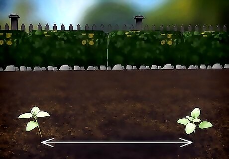 Plant seedlings in full sun when the ground is warm. Plant your thyme seedlings in spring about two to three weeks before the last frost. For best results, plant them in soil that is about 70°F (21°C). Space the seedlings 8 to 12 inches (20 to 30 centimeters) apart. Thyme thrives in full sun, so plant them in a very sunny area. Most thyme plants will eventually grow to be 6 to 12 inches (15 to 30 centimeters) in height.