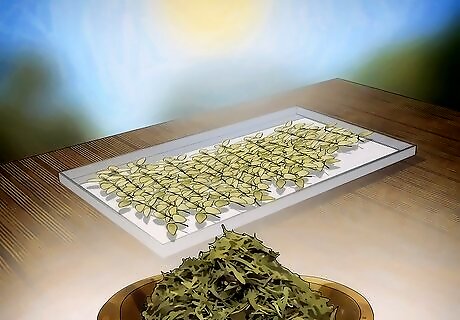 Dry the harvested thyme sprigs somewhere warm and shady. Hang the sprigs in a dark, well-ventilated area to dry them. You can also dry them by laying them out on a tray and putting them in a food dehydrator. Once the pieces dry out completely, the leaves will easily fall off the stems. After you’ve removed the dried leaves, store them in an airtight container until you’re ready to use them. You can also store your dried thyme in the freezer or preserved in oil or vinegar.