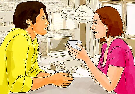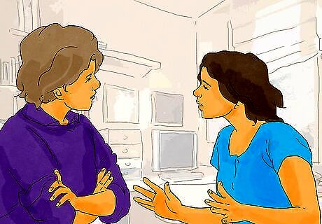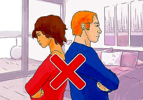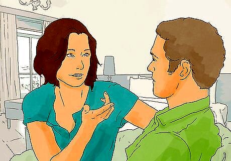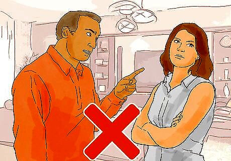 Stay calm. When in conversation with your partner or family, do not yell or use foul language. Always be respectful and mature when talking to your family or partner. Speak to them as you wish to be spoken to. Do not strike or lash out at your family or partner. Breathing exercises are useful for remaining calm. If you feel yourself getting stressed, close your eyes and breathe in for three seconds through your nose. Exhale for five seconds through your mouth. Repeat until you feel more relaxed. If emotions are running high and you feel that you or your partner/family are getting too stressed, take a break. Say, for instance, “This seems to be getting us nowhere. Let's talk more about this later.”