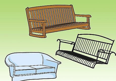 Choose your swing. There are several types of swings available. For instance, you might choose a wicker porch swing, a metal porch swing, or a wooden porch swing. You can get porch swings in a rainbow of colors, so choose a color that suits your porch and pleases the eye. There is no functional difference associated with the different types of colors or materials of the porch swing. Your choice of swing is entirely based on your personal preference.