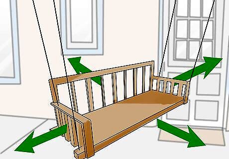 Test your swing. Give it a push. If it moves properly back and forth, you’ve succeeded in hanging your porch swing. If you find that one end is not quite even with the other, leading to an off-kilter appearance, adjust the chain’s location on one or the other sides. For instance, if the right side of your porch swing is lower than the left, you’ll need to shorten the length of chain connecting the two swing screws on the right side. Alternately, you could extend the length of chain between the two swing screws on the left side so that it sits lower.