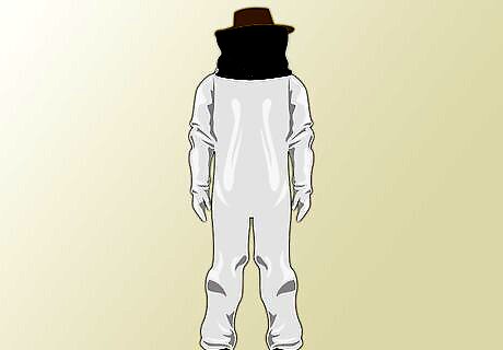Put on protective gear. There is no way to completely prevent bees from attacking you when you remove the honeycomb from their hive. As a result, a full beekeeper's outfit is recommended whenever you intend to harvest honey. At the absolute minimum, make sure that you at least have thick elbow-length gloves, a veiled hat, and bee-proof overalls. You should also wear a long-sleeved shirt and long pants. You can make a homemade beekeeping suit with a sewing pattern and ripstop nylon. If you're serious about beekeeping, you may want to invest in a professional beekeeping suit.