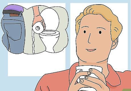 Try to squat. If you can, put your feet up on a small trash bin. Squatting will allow you to pass your waste more quickly and with less effort, minimizing the amount of time you spend in the bathroom.