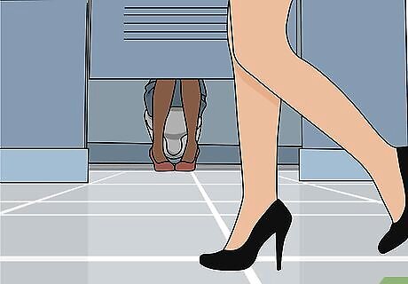 Lock the door. Either the stall or the door to the bathroom itself should have a lock on it. Locking the door will help relieve some of the anxiety you might have and will ensure your privacy.