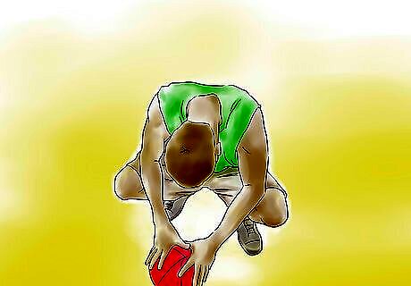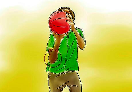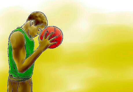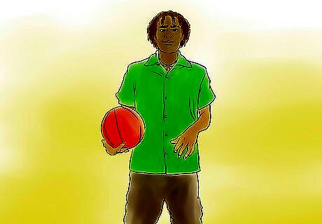 Hold the ball. Put your strong hand anywhere on the ball because that will be your shooting hand. Place your other hand on the side of the ball closest to you. If you are right handed your right hand should on the side of ball near you and your left hand should be on the left side of the ball. If you're left handed then your left hand should be on the side closest too you and your right side should be on the left side of the ball.