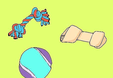 Gather all the toys and treats you’ll need. Many of the games you’ll play with your dog will require toys, like ropes, chew toys, or balls. Make sure you are prepared with a variety of toys your dog likes to play with. In addition, you will want to have treats available to reward your dog for good behavior, especially if you’re engaging your dog in training activities.