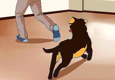 Move breakable items to a safe place. No matter where you play in your house, playing with your dog indoors can get rowdy, so make sure you move anything valuable that might get knocked over or broken to a safe place. For example, move breakable vases or picture frames up high or to a safe room.