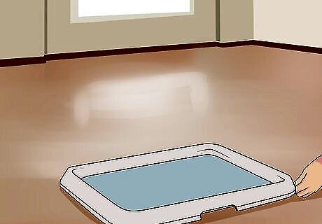 Place pee pads around the house. To keep from having to go outside in inclement weather, you can also place pee pads around the house so that your dog can urinate without going outside. Bathrooms and laundry rooms are good spots to place these pee pads.