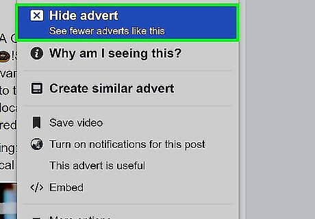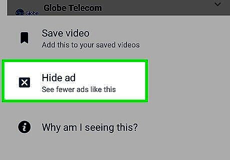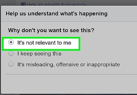 Click Hide ad. This is the top option in the pop-out menu. Doing so will bring up a window with the following reasons for hiding the ad: It's not relevant to me I keep seeing this It's offensive or inappropriate