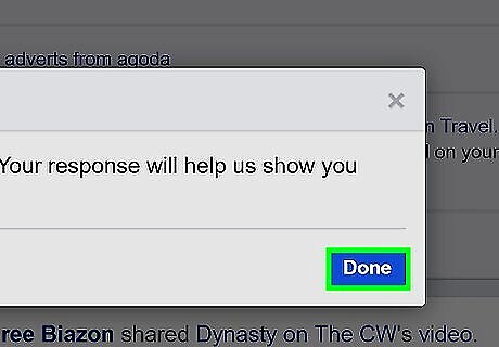 Click a reason for hiding the ad. This will select your preferred reason. You can also click the X in the top-right corner of the pop-up window to close it without giving feedback.