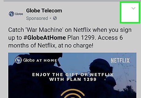 Tap either … (iPhone) or ˅ (Android). It's in the top-right corner of the ad's post. Doing so will invoke a menu.