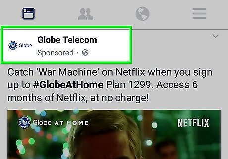 Scroll to an ad you wish to hide. Ads can appear as "Suggested" posts, though you might also see ads for pages that friends like.