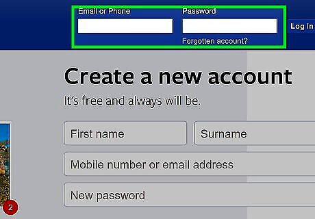 Go to the Facebook website. It's located at https://www.facebook.com/. If you're already logged in, this link will open your News Feed. If you aren't logged in, you'll need to enter your email address (or phone number) and password in the top-right side of the window and then click Log In to continue.