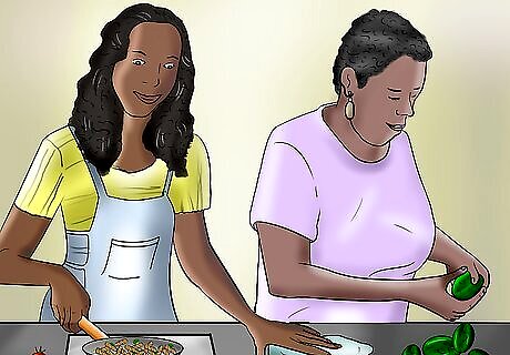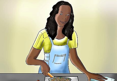 Put early arrivals to work. It can be a little awkward when party guests show up over 15 or 20 minutes early; you’re still preparing, but expected to entertain the guest as well. To avoid this situation, put any early arrivals to work helping you prepare the meal. For example, if you’re serving a charcuterie plate as an appetizer but haven’t had a chance to prepare it yet, ask your early guest(s) to slice the cheese and meats and set out crackers and olives. If you have guests who arrive early and would like to finish baking or preparing a dish in your kitchen, or who would like to refrigerate a cool dish in your fridge, give them the time and space they need.