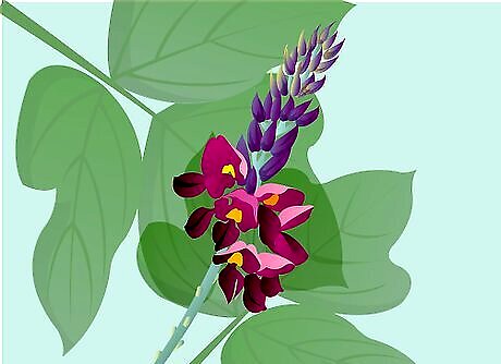 Look for purple or reddish purple flowers arranged in clusters. Kudzu produces flowers in late summer, usually in August or September in the southern United States. The flowers form a cluster (called a raceme) that can grow up to 8 inches (20 cm) high and emerge from the central petiole of a leaf arrangement.