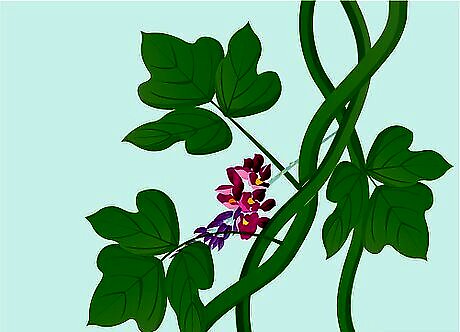 Look for long vines covered in small, brownish bristles that trail across the ground, climb any vertical surface, and form dense bunches of foliage. The key characteristic of kudzu vines is their tremendous growth rate; they can gain a foot (30 cm) of length per day in peak conditions. Kudzu can often be seen entirely covering tall trees, utility poles, or other structures. As they mature, vines may become thick and woody. Kudzu vines are capable of climbing nearly any type of support, and will also snake across the ground, rooting at each node.
