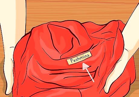 Check the weave. A pure cashmere pashmina shawl will always be woven on a hand-loom. As a result, it will have an irregular weave. Hold the shawl against light and the irregularities will easily show.