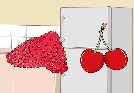 Enjoy berries and cherries. Like spinach and other dark greens, berries and cherries are antioxidant rich and have been linked to improved brain health. Specifically, both berries (like raspberries, blueberries or blackberries) and cherries contain the antioxidant groups anthocyanins and flavonoids. These groups have been shown to help boost memory. Enjoy a serving or two of these brain foods as many times as you can during the week. You can choose either fresh or frozen for the same benefits. Also, make sure to measure out the appropriate serving. It's about a 1/2 cup of fruit per serving.