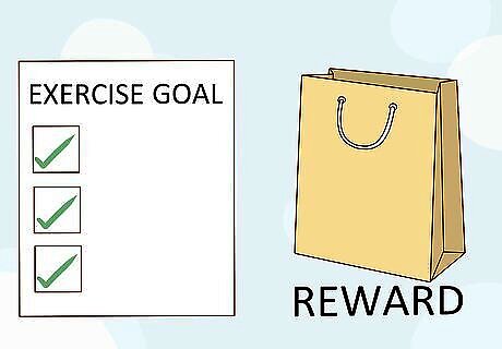 Set up rewards for yourself. Another way to keep yourself motivated is by setting up small rewards. As you meet your goals or stay on track with your plan, you'll have a treat waiting. Set up a reward for staying on track. For example, if you hit your exercise goal for a month, maybe you purchase a new workout outfit or a pedometer to help you continue to meet your goals. If you're watching your weight as well, food related goals may not be a good idea. Stick with items like new clothes, new songs, a movie out or something else enticing.