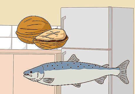 Eat healthy fats. Another important group of foods that can help prevent mental decline and improve your brain health are healthy fats. Found in higher quantities in the Mediterranean diet, these fats should be added to your eating pattern to help improve your brain health. Healthy fats, especially DHA (or docosahexaenoic acid) have been shown to help improve memory and help your brain operate more efficiently. It's no surprise as DHA is the most prevalent type of fatty acid in your brain. Foods highest in DHA include: walnuts, algae and fatty fish like tuna, salmon, mackerel and sardines. Swap out a serving or two of other proteins for fatty fish. If you're not a fan of seafood or have an allergy, discuss taking a DHA supplement with your physician as an alternative to these DHA-rich foods.