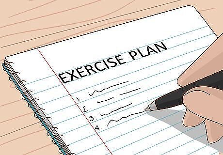 Make an exercise plan and journal. When starting any new routine, it can be helpful to set yourself up with a plan and keep a journal to track your progress with your plan. Think about what types of exercises you want to do, how often and when you'll be doing them. Write this out as your exercise plan. You may choose to mark it on a calendar, in your date book or make your plan on a plan sheet of paper. You can also keep your plan in a journal. That way you can comment on your plan, take notes on what is working and what's not working and how often you're sticking to your plan. Track your progress in your journal as well. Track how often you're exercising, for how long and how it's making you feel.