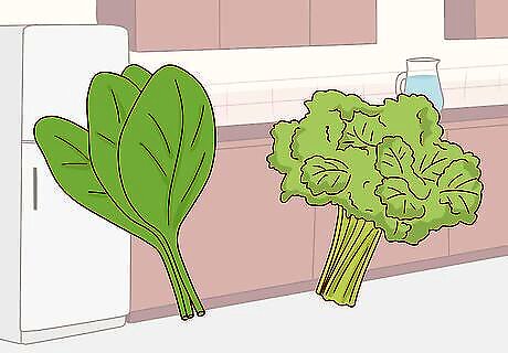 Fill up with leafy greens. In addition to a Mediterranean style diet, eating a lot of dark greens has been shown to be beneficial for your overall brain health. Studies have shown that those people who eat at least 3 servings of dark greens each day slow mental decline due to aging by 40%. It's believed that the antioxidants and flavonoids present in dark greens are responsible for the health promoting effects. Leafy greens you can try include: spinach, kale, collard greens, swiss chard or mustard greens. Make sure to note that a serving is 2 cups.