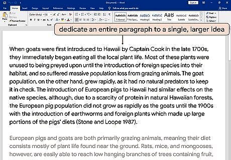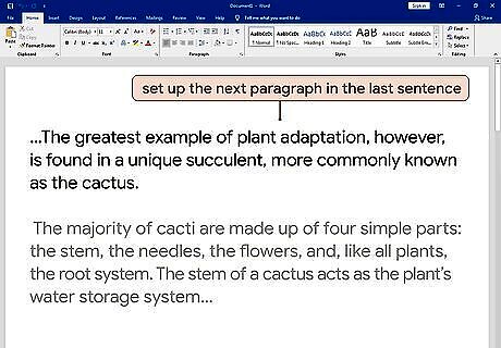 Dedicate an entire paragraph to a single, larger idea when necessary. Major concepts that your readers need to understand to grasp the rest of your paper deserve an entire paragraph. That way, the explanation stands out so your readers can reference it if they need to. Don't worry about paragraphs being too short—relaying the information clearly is more important. For instance, if how plants use chemical compounds in soil is necessary for the reader to understand the rest of your paper, take the time to explain it clearly.