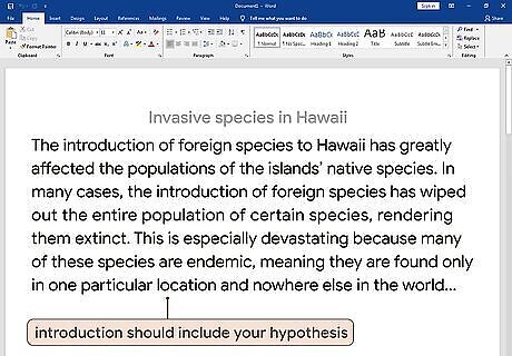 Write a compelling introduction that includes your hypothesis. The introduction is where you'll provide context on the topic you're covering and present any bold questions that led you to perform the study. Reference past studies and point out why your study is different and necessary (this is also called a "statement of purpose"). The introduction should address 4 questions: What's the topic I studied? Why is the topic important? What findings already exist on the topic? How will this study support the current body of research and increase understanding of the topic?