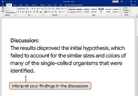 Interpret your findings in the discussion section. Critical thinking is key when writing your discussion, the section where you'll be sharing your understanding of your study. Think about what meaning your study holds (i.e., how it fills gaps in existing literature or what it means for the future of research). Discuss the importance of your findings in the same order you reported the data in the results section. Be sure to do the following: explain your results, compare your results with existing knowledge, use deductive reasoning to show how your findings can apply to a more general arena, pose a new question for research (almost like a 2nd hypothesis). Use the present tense to discuss hard facts and use the past tense to reference prior studies. It may help to use subheadings within your discussion section. For instance, you could organize your interpretations by theme.